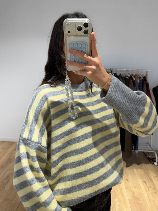 Attention : Dernières pièces disponiblePull marinière noir et beige en Laine Melangé - 2 Coloris