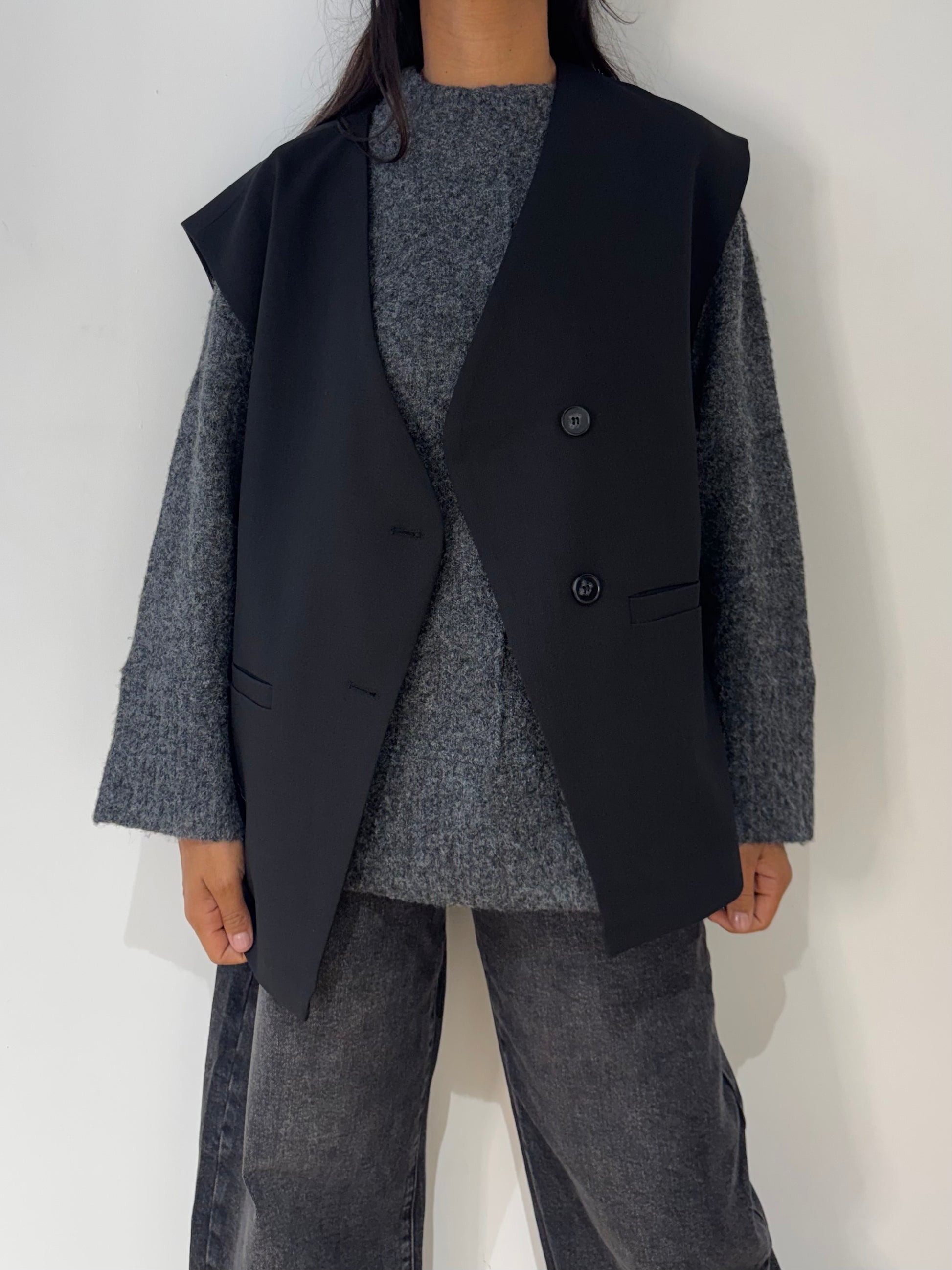 Portez-le sur un pull ou une chemise pour un look chic et moderne, ou sur un t-shirt pour une allure plus décontractée. Associez-le à un jean large et des baskets pour un style urbain, ou à un pantalon fluide et des bottines pour une tenue plus élégante. En automne, superposez-le sur une maille douce pour jouer sur les volumes, et au printemps, portez-le seul sur un top léger pour un effet minimaliste. Ce blazer sans manches se porte facilement du matin au soir, et donne du caractère à toutes les silhouettes.