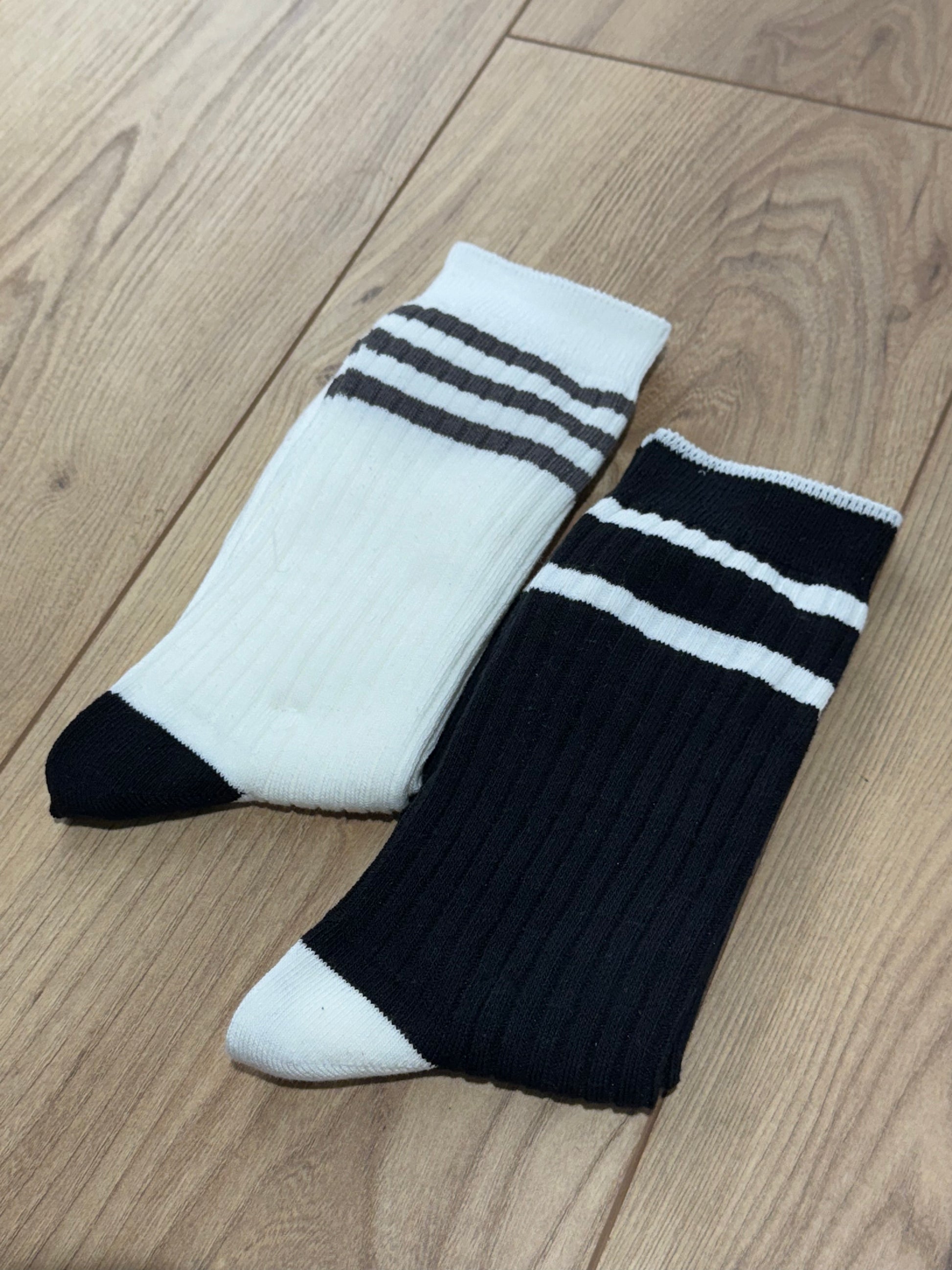 Portez ces chaussettes à rayures contrastées avec des sneakers pour un look décontracté et tendance, ou associez-les à des chaussures habillées pour un style original qui mêle chic et audace. Idéales avec un pantalon retroussé ou une tenue sportive, elles apportent une touche moderne à vos looks du quotidien. Leur design noir et blanc s’adapte facilement à toutes vos tenues, qu’elles soient casual ou plus sophistiquées.