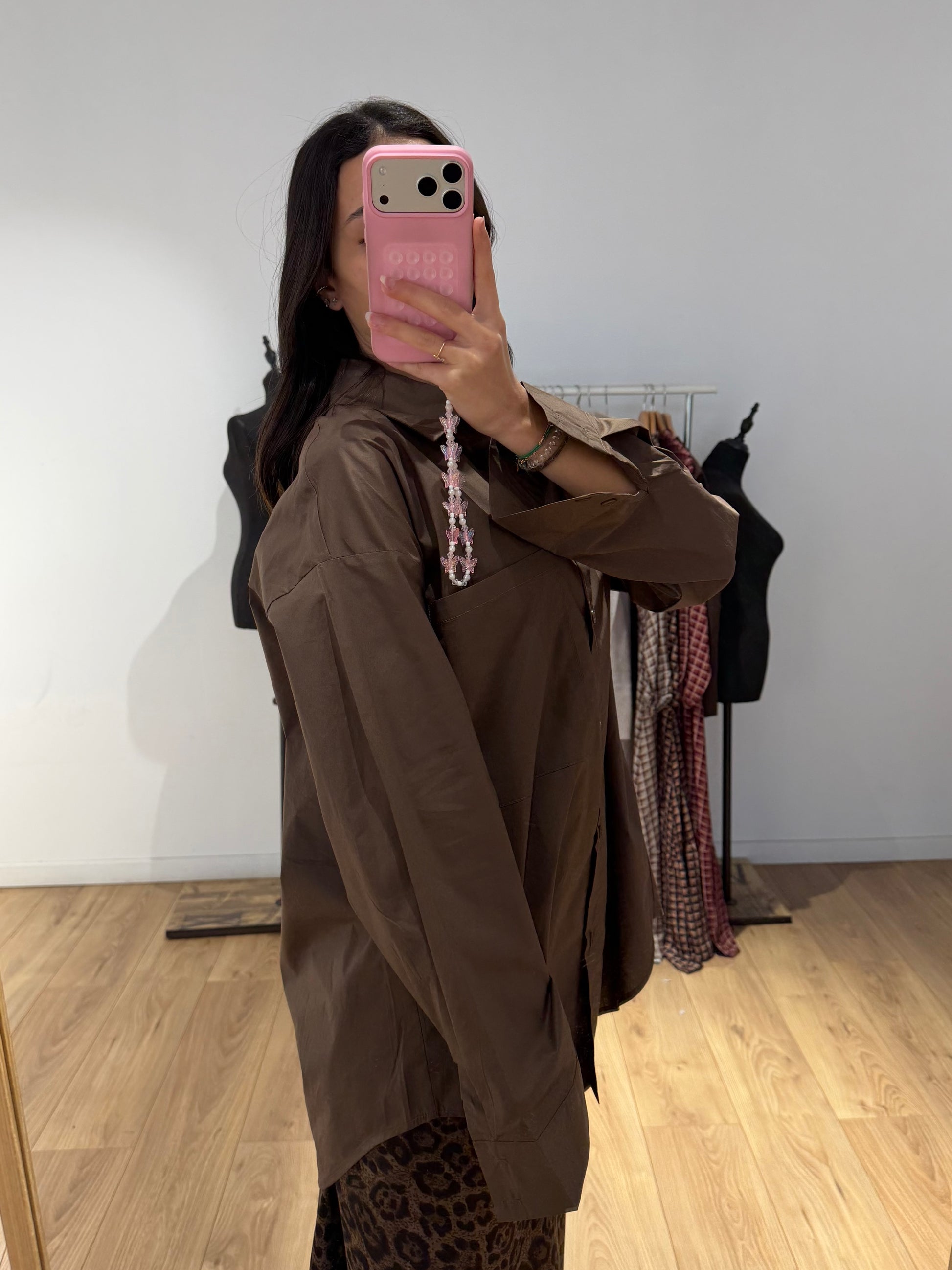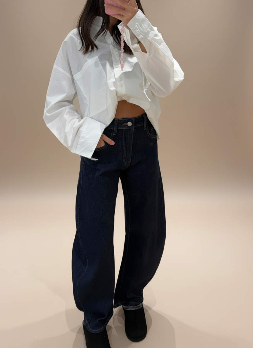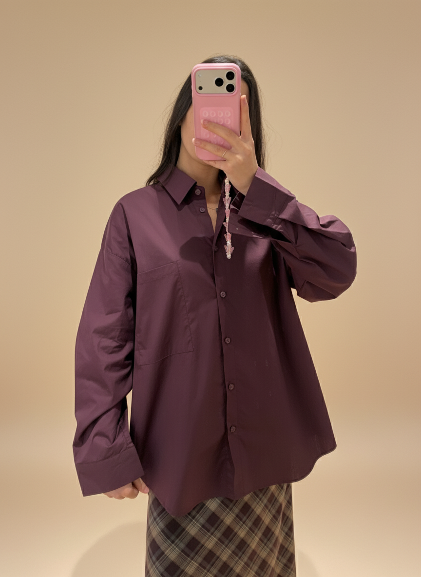 Cette chemise en coton se porte aussi bien fermée que ouverte, selon l’effet souhaité. Pour un style classique, elle peut être rentrée dans un jean taille haute ou un pantalon fluide, avec des chaussures plates ou des bottines. Pour une silhouette plus décontractée, elle peut se porter ample sur un legging, une jupe longue ou un pantalon large. En version surchemise, elle s’associe facilement à un t-shirt basique ou un débardeur, portée ouverte. Elle peut également être nouée à la taille pour un rendu plus mode. Sa coupe légèrement oversize permet de jouer avec les volumes et de l’adapter à toutes les saisons.
