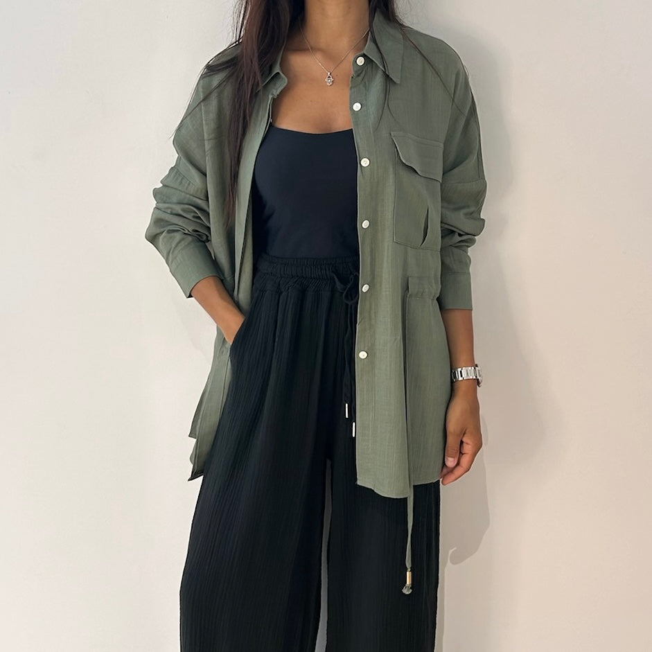 Chemise saharienne fluide en 100% lin – 4 Coloris