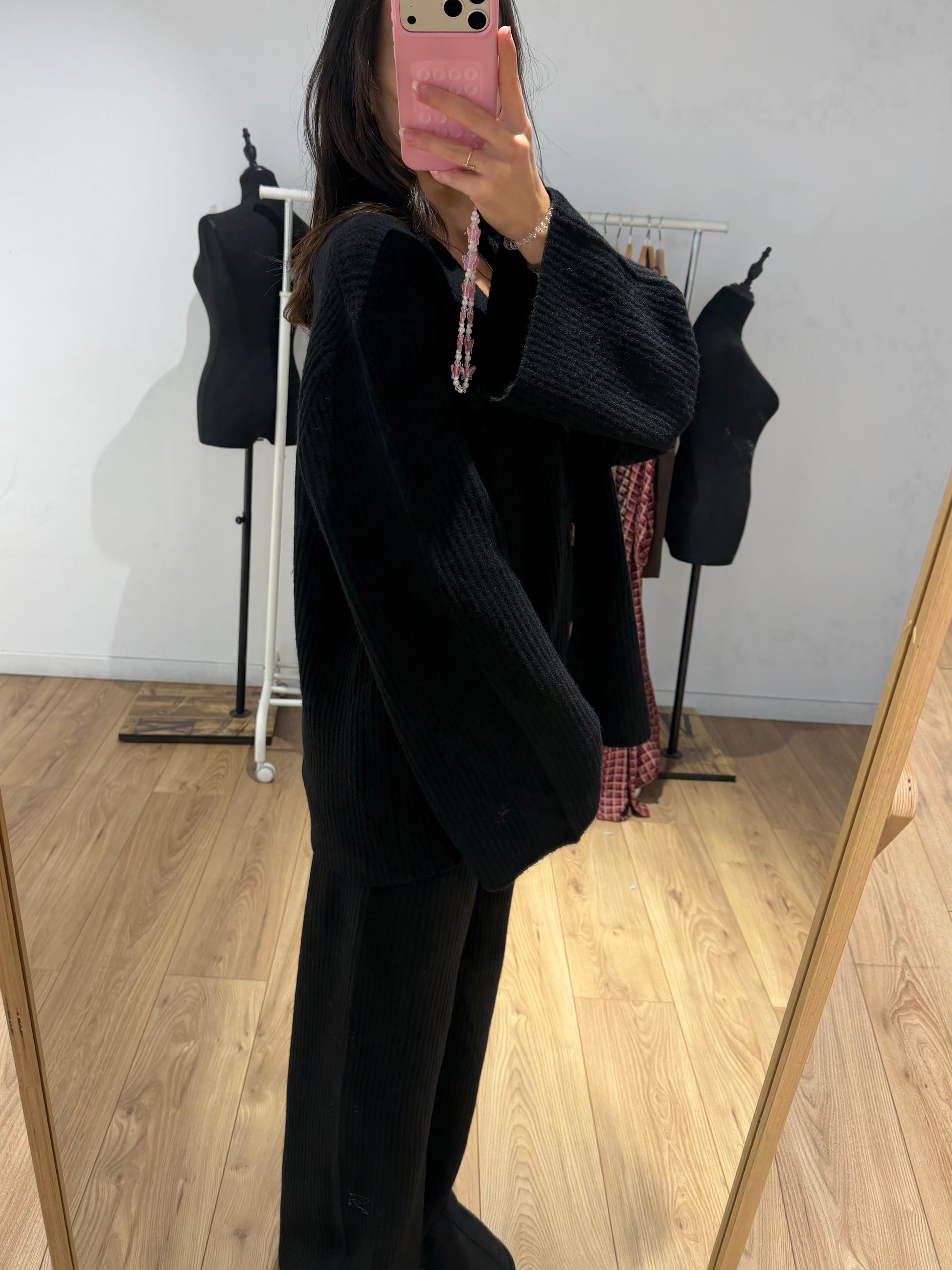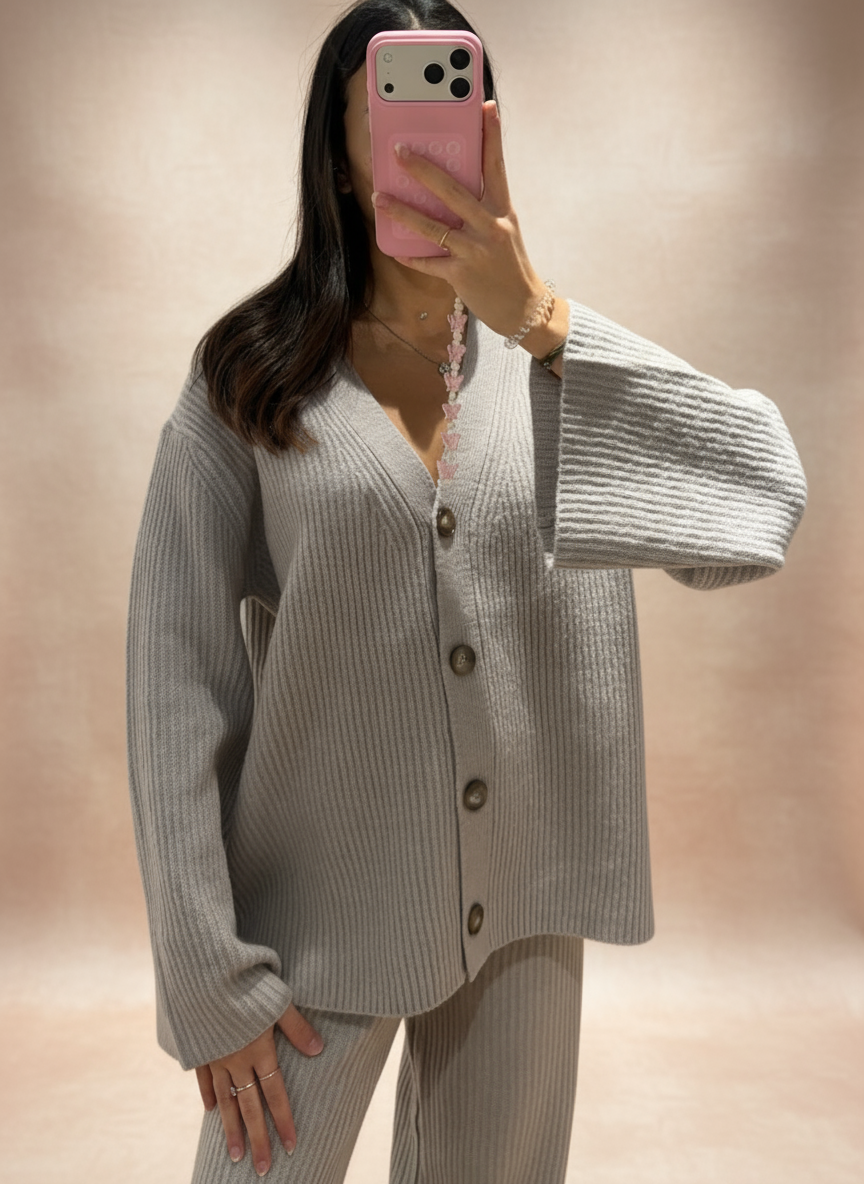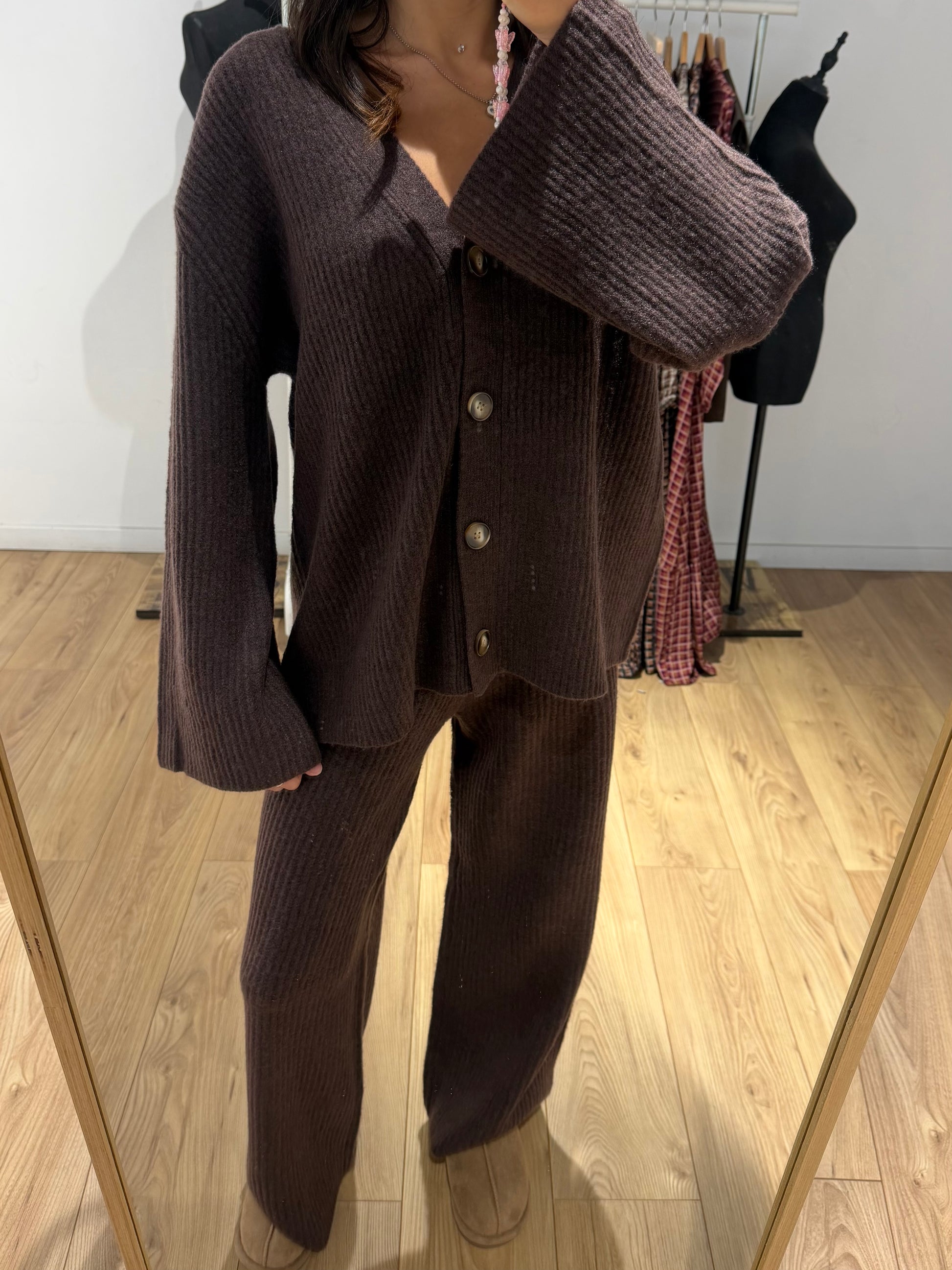 Découvrez notre ensemble côtelé femme composé d’un gilet boutonné à manches larges et d’un pantalon coupe large, parfait pour un look moderne et confortable. Le gilet présente une coupe ample, un joli décolleté en V et de beaux boutons effet écaille qui apportent une touche chic. Le pantalon, taille haute et fluide, allonge la silhouette tout en offrant une liberté totale de mouvement. Idéal pour créer un style élégant sans effort, cet ensemble est parfait aussi bien en tenue d’intérieur cocooning qu’en look city casual avec des baskets ou des bottines. Disponible en beige doux, marron chocolat et noir intemporel, il s’adapte facilement à toutes les morphologies grâce à sa coupe confortable. Cet ensemble devient rapidement un essentiel du dressing pour un style minimaliste, raffiné et tendance au quotidien.
