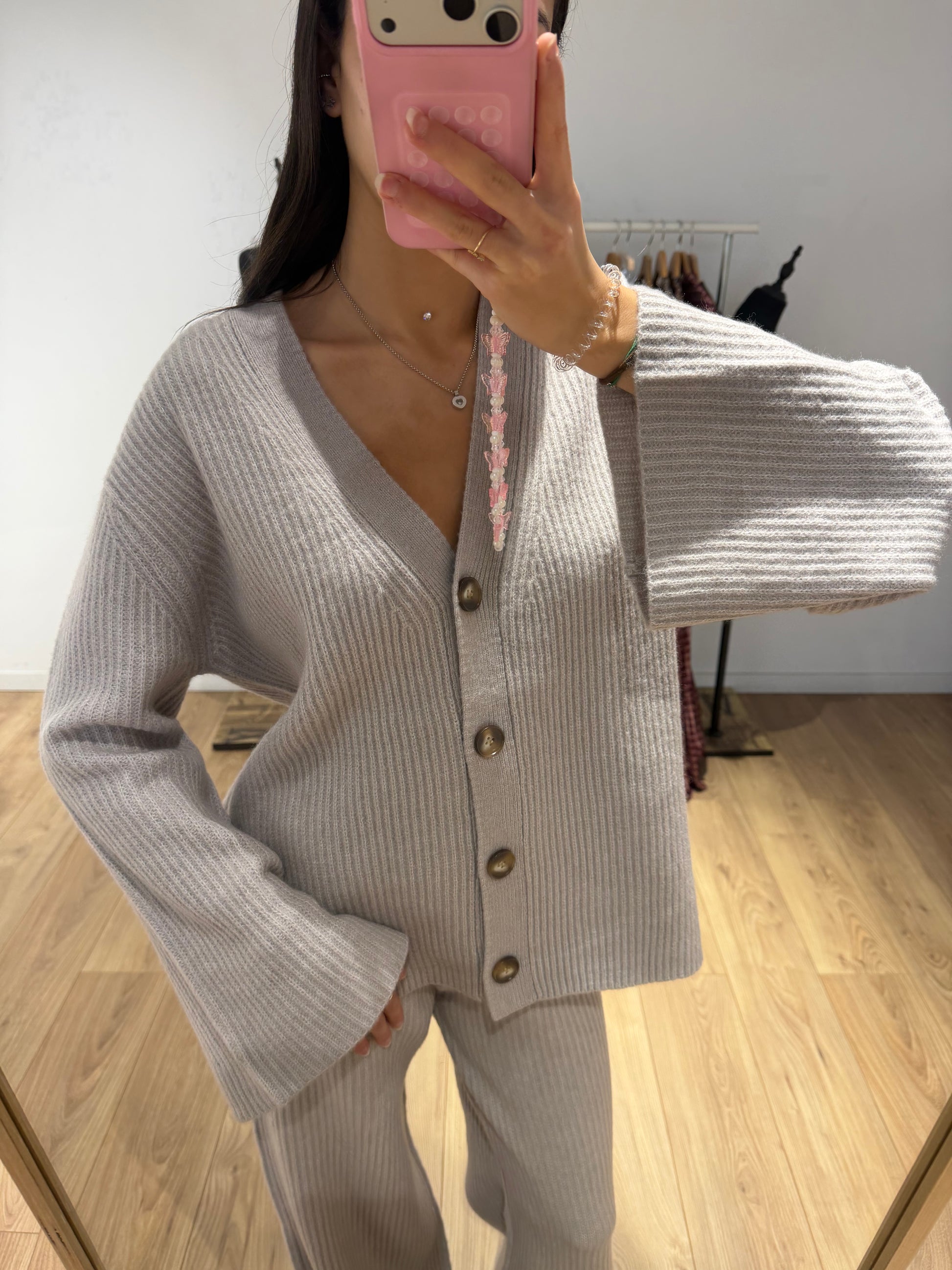 Porte cet ensemble de plusieurs façons selon le contexte : fermé avec des baskets pour un look casual du quotidien, gilet légèrement rentré dans le pantalon avec des bottines pour une silhouette plus chic, ouvert sur un col roulé fin et un manteau long pour un style layering en hiver, porté seul comme un top décolleté le soir avec des talons et une pochette, ou fermé sous un blazer oversize pour un look bureau moderne et structuré.