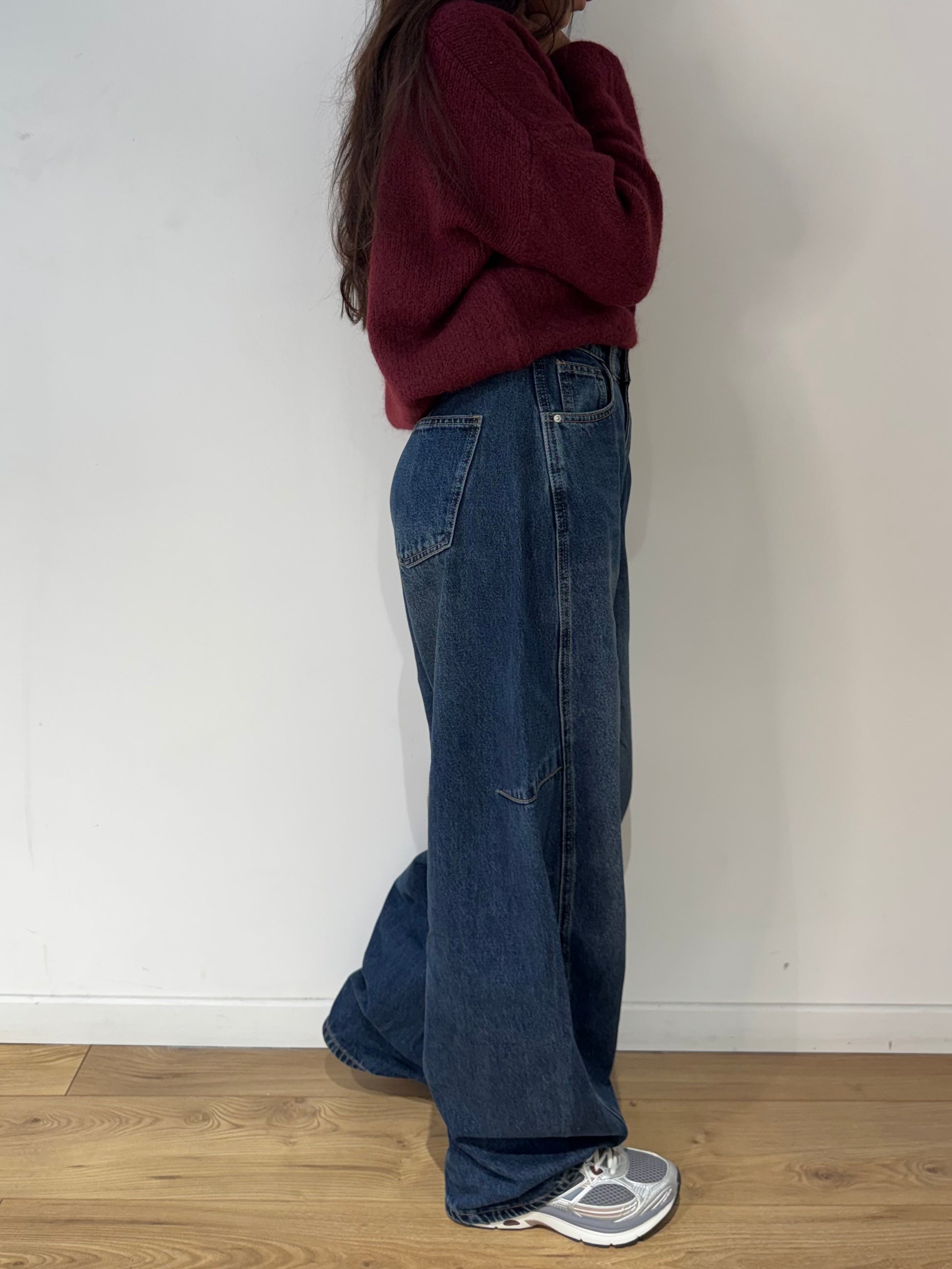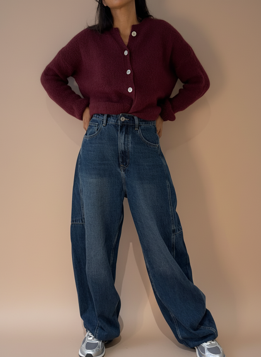 Jean large taille haute à la coupe fluide et moderne, pensé pour offrir un équilibre parfait entre confort et style. Sa jambe ample et son effet légèrement délavé lui donnent une allure vintage, tout en restant actuelle et facile à porter. Réalisé dans un denim souple et résistant, il structure la silhouette tout en laissant une liberté de mouvement optimale. Parfait pour un look décontracté chic, il se marie aussi bien avec une maille douce, un t-shirt basique ou une chemise oversize. Associé à des baskets pour un style casual ou à des bottines pour un rendu plus habillé, ce jean large s’impose comme une pièce essentielle du dressing féminin, à la fois intemporelle et ultra tendance.