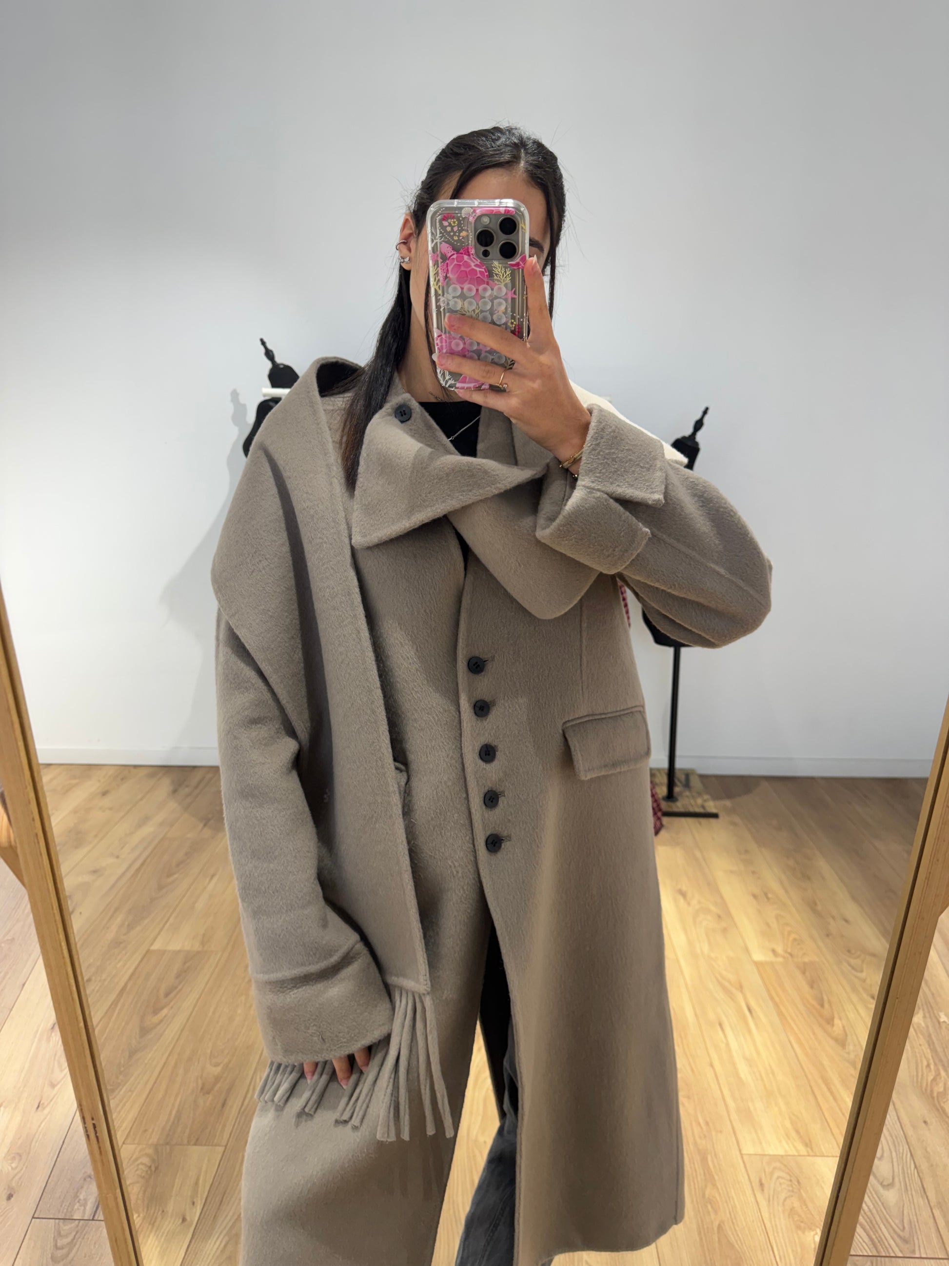 Ce manteau en laine avec écharpe intégrée se porte facilement en toutes occasions : en journée avec un jean droit, un pull col roulé et des bottines pour un look décontracté chic, ou en soirée sur une robe fluide et des escarpins pour une allure élégante et sophistiquée ; il peut aussi s’associer à un pantalon tailleur et des mocassins pour un style urbain et moderne, tandis que l’écharpe intégrée apporte une finition harmonieuse et pratique sans ajouter d’accessoires supplémentaires.
