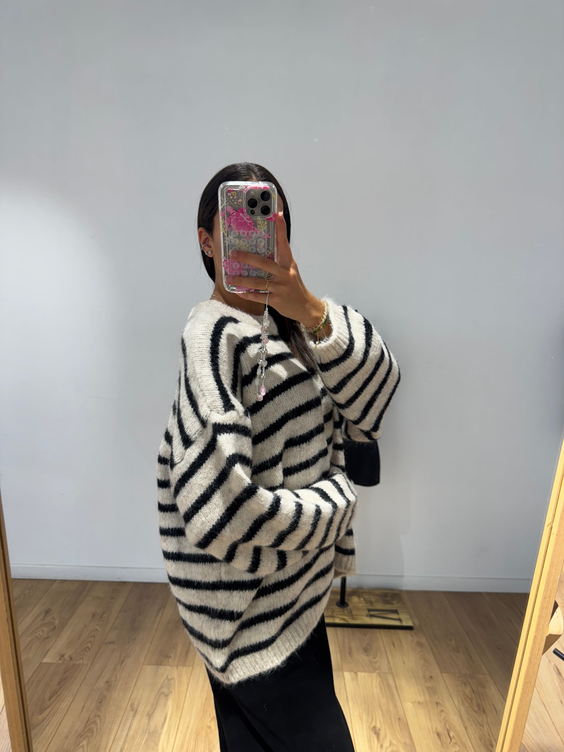 Pull marinière noir et beige en Laine Melangé - 2 Coloris