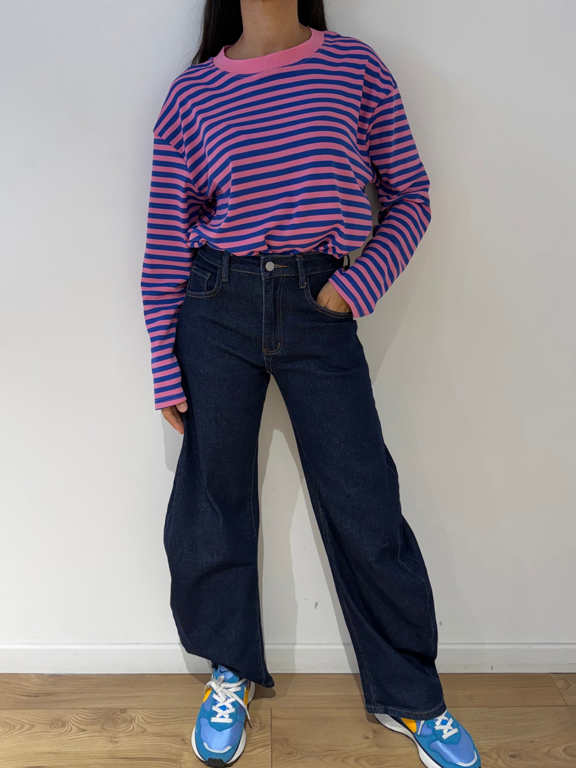 Ce t-shirt à manches longues se porte facilement dans des looks décontractés ou plus travaillés. Pour un style casual, il s’associe parfaitement avec un jean, un pantalon droit ou un short en mi-saison. Il peut être porté rentré légèrement sur le devant pour structurer la silhouette ou laissé libre pour un look plus relax. En hiver, il se glisse sous une veste, un blazer ou un manteau, et fonctionne très bien avec un pantalon plus épais ou une jupe. C’est une pièce idéale pour apporter une touche de couleur et de modernité à une tenue simple.