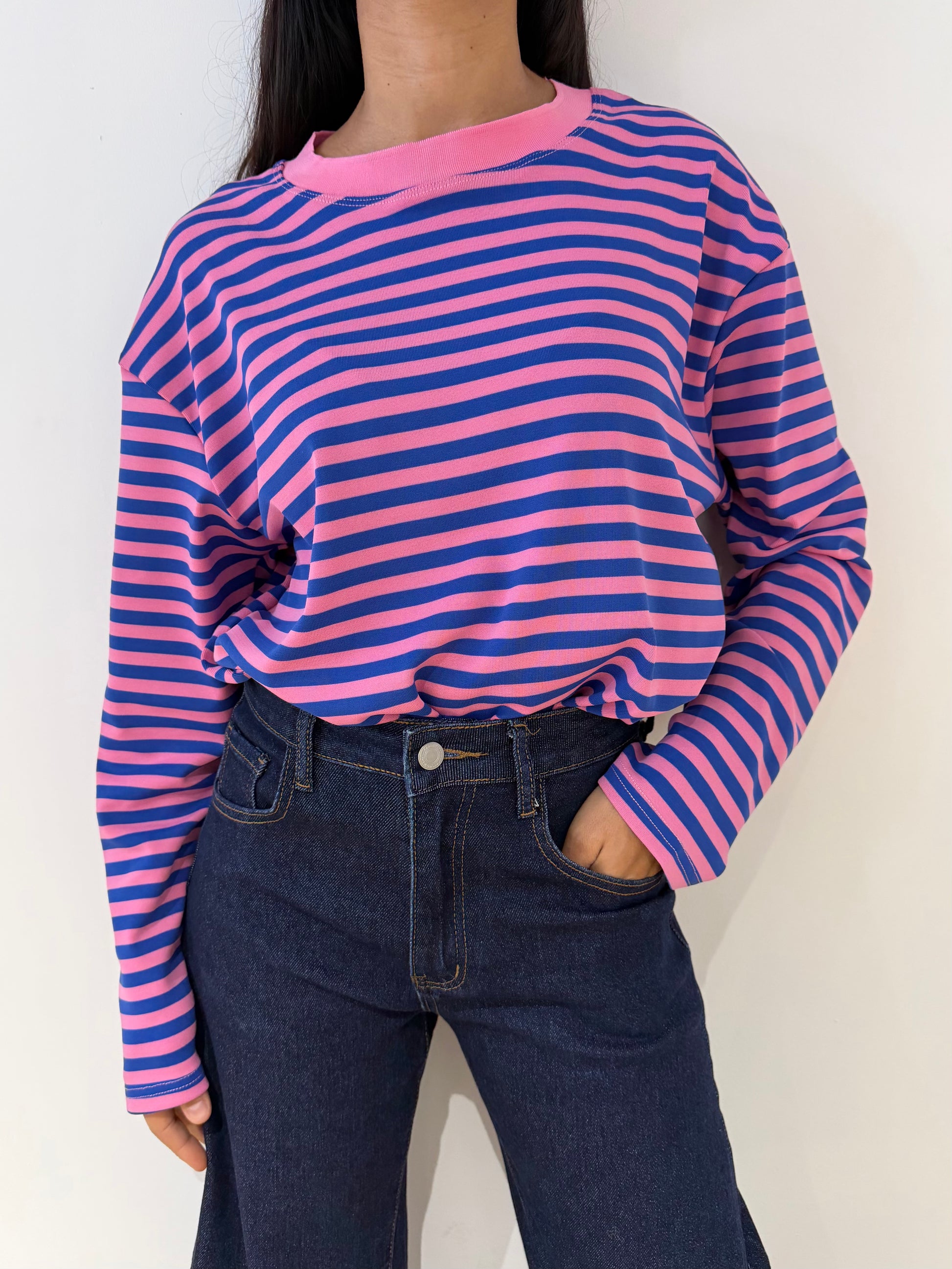 T-shirt à manches longues au style moderne et dynamique, conçu pour apporter de la couleur et du confort au quotidien. Sa coupe droite légèrement ample offre une silhouette fluide et agréable à porter, parfaite pour toutes les morphologies. Les rayures contrastées donnent du caractère à la pièce tout en restant faciles à associer, tandis que l’encolure ronde apporte une finition simple et intemporelle. Léger et confortable, ce t-shirt est idéal pour la mi-saison comme pour l’hiver, porté seul ou en superposition. C’est une pièce casual forte, à la fois tendance et facile à intégrer dans un dressing du quotidien.
