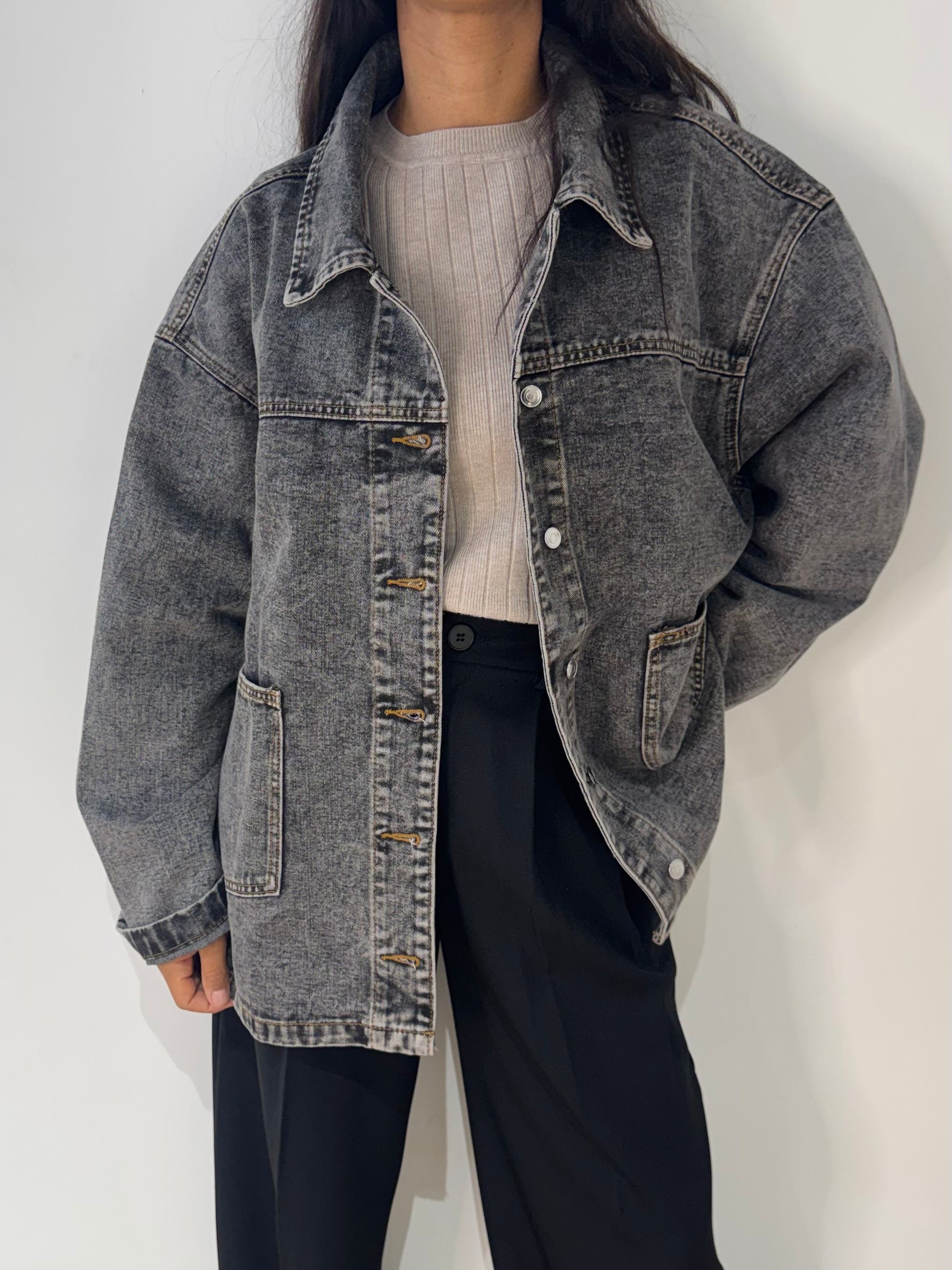 Veste oversize en denim délavé, à la coupe droite et au style vintage affirmé. Confortable et facile à porter, elle apporte une touche urbaine et décontractée à toutes les silhouettes. Son denim gris effet usé, ses poches plaquées et ses surpiqûres contrastées lui donnent un caractère authentique et tendance. À enfiler sur un pull côtelé, un t-shirt basique ou une robe fluide, cette veste devient un indispensable du dressing pour la mi-saison. Parfaite pour un look casual chic, elle se marie aussi bien avec un pantalon large qu’avec un jean ton sur ton pour un total look denim. Un essentiel intemporel à porter toute l’année.